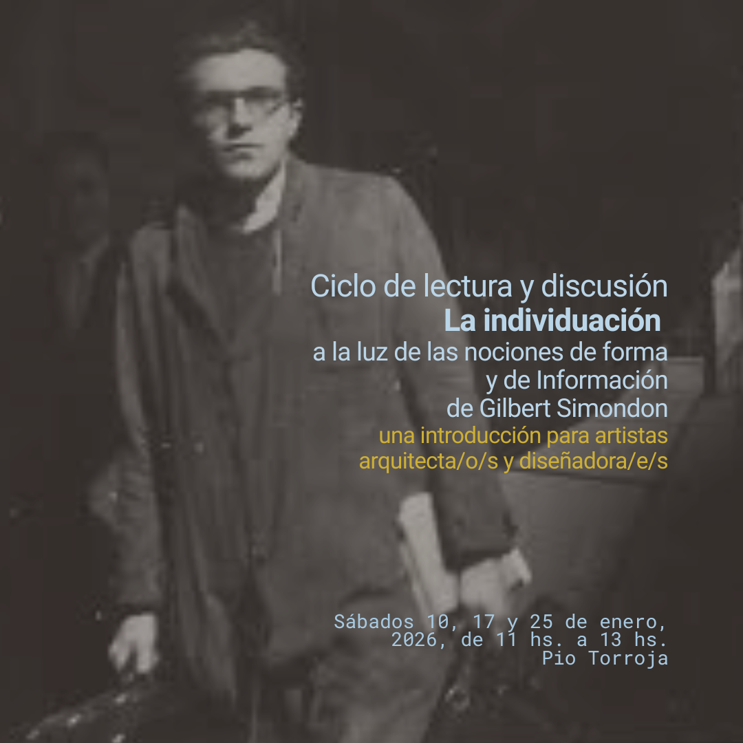 ene. 2026. Ciclo de lectura y discusión: La individuación, a la luz de las nociones de forma y de información de Gilbert Simondon. Una introducción para artistas arquitecta/o/s y diseñadora/e/s.